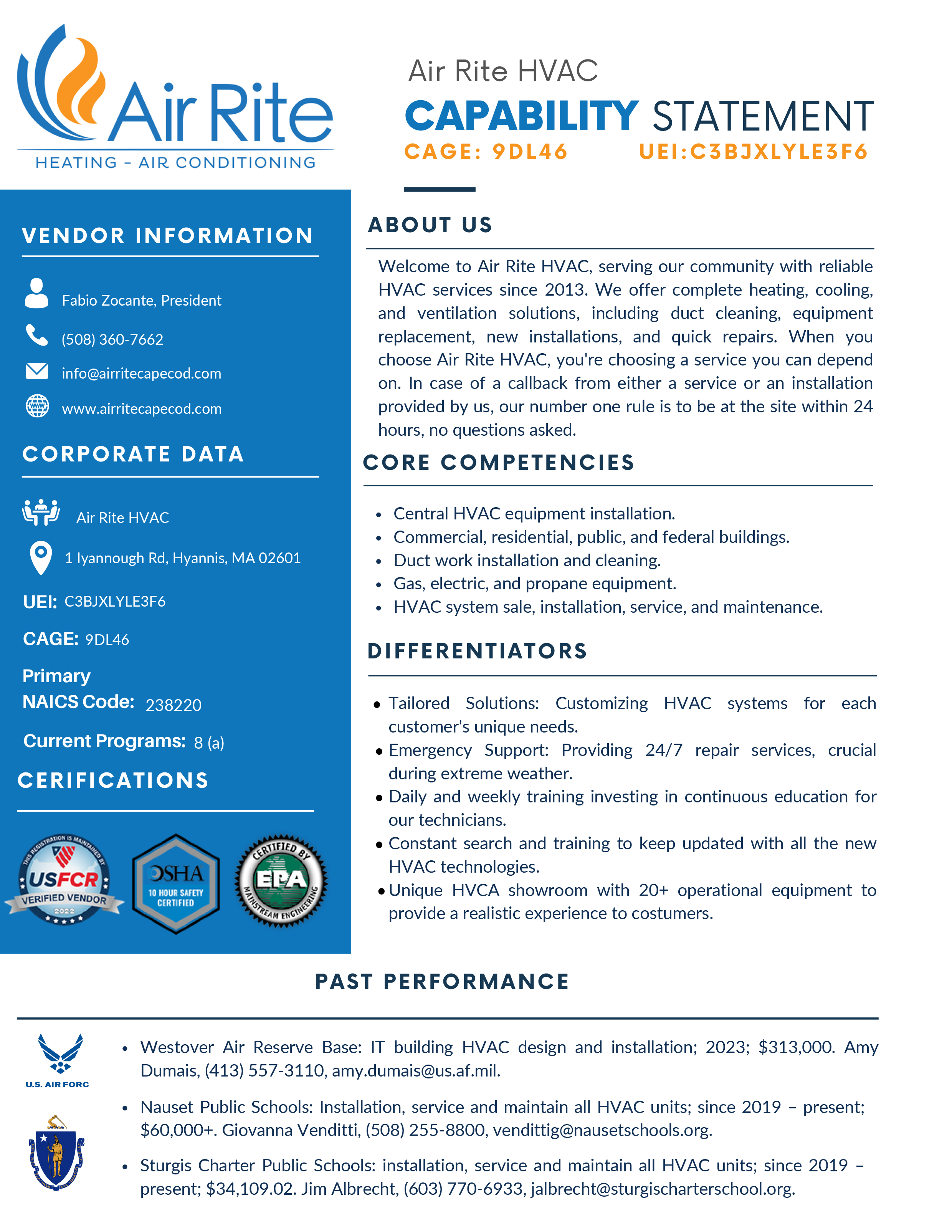 “These people are incredible. I own 4 homes on Cape Cod and have used other HVAC companies. One time, I stupidly called someone else to service a broken hot water tank just before the busy summer rental season commenced. The competitor was booking 6 weeks out -- even though I was a repeat customer, they still wouldn't budge and just said, "it's our busy season." When I called Air Rite HVAC, THEY HAD THE WATER HEATER REPLACED THE VERY SAME DAY!!!!!! Needless to say, I have Air Rite HVAC on speed dial these days. I wouldn't think of calling anyone else.”
